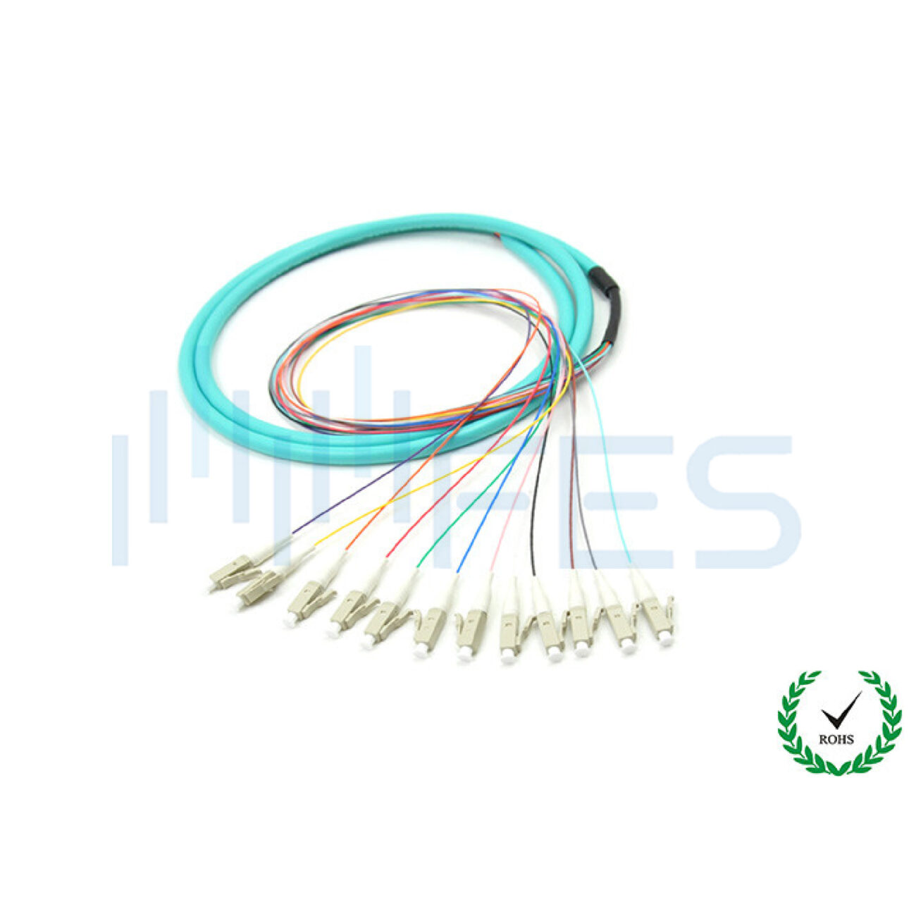 Fan Out LC OM3 Fibre Optic Cable Pigtail 3m LSZH Multi Fibers 12 Cores