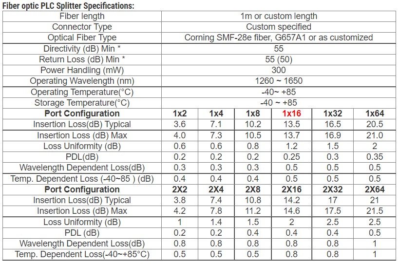 1 x 16 Blockless Low PDL Passive Optical Splitter Fiber Optic G675A , FTTH Splitter Insertion Loss