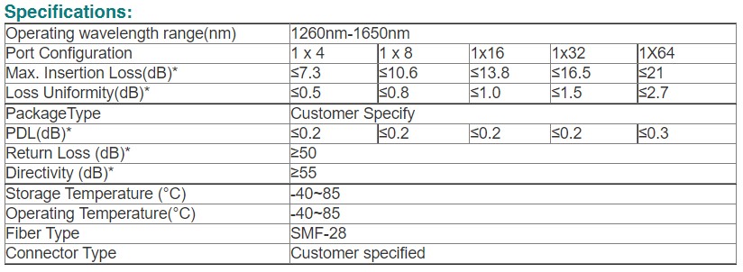 - Wide Operating Wavelength: From 1260nm to 1650nm
