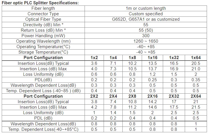 - Low Polarization Dependent Loss.