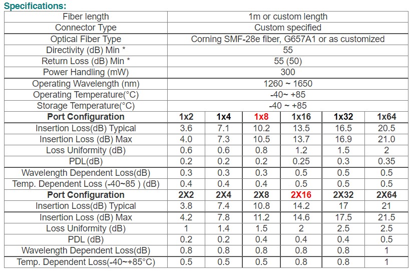 Splitter Type : Mini Tube Type