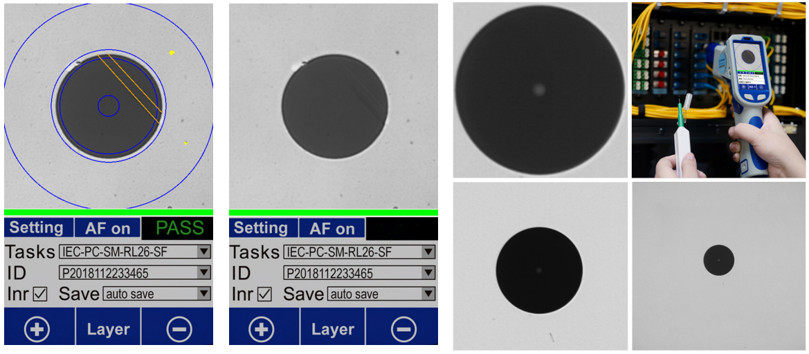 AutoGet Wifi is configured with pass/fail LED indicators, users can directly determine the endface inspection result. If it displays in green, it means PASS, no need to check the screen to see the result and directly go to the next point. If it displays in red, it means FAIL, user can check the screen to view the analysis image and for judgment.