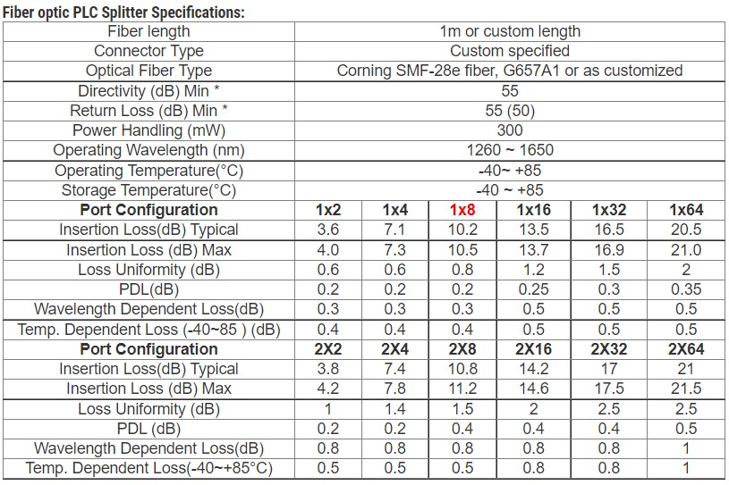 - Low Polarization Dependent Loss.
