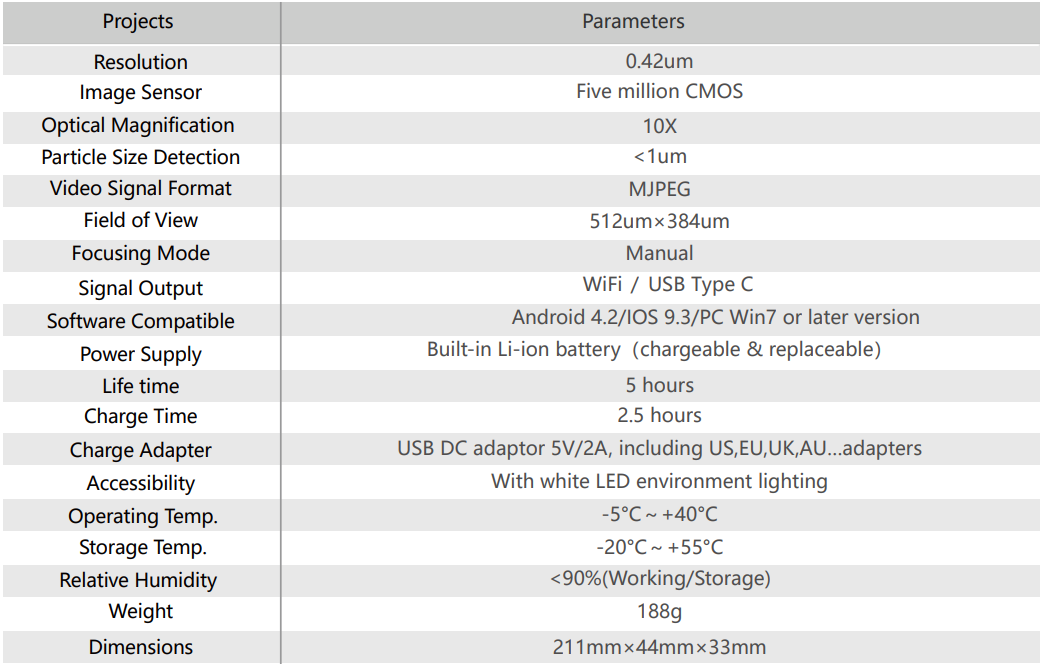 Dimension EasyGet Wifi wireless fiber endface microscope, based on manual inspection, through software upgrade endface to achieve automatic detection function, provides a true wireless fiber endface automatic detection solution. Through Wifi and real-time transmission of video, automatic analysis, storage of data and reports among various smart terminal devices, field technicians can visually check the quality of the fiber endface on their mobile devices, light and portable, easy to use, self-powered, and Humanized appearance design, which provides an unparalleled user experience, it is the most practical optical fiber endface inspection for field technicians.