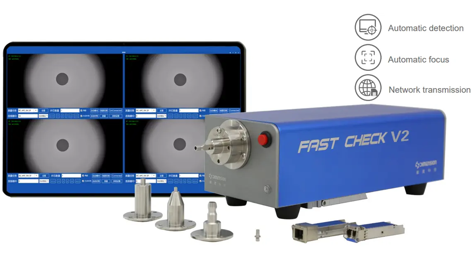 FastCheck; V2 is a fully automated end face detector with automated functions such as automatic center, autofocus, automatic exposure, and automatic measurement