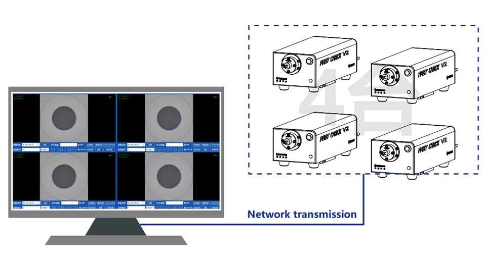 FastCheck; V2 supports network transmission, and PC software can simultaneously support 4 FastCheck devices; The connection and operation of V2 devices Say goodbye to the traditional one on one connection between the end detector and PC through data cables