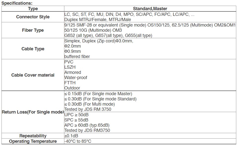 Connector : FC/UPC Single Mode