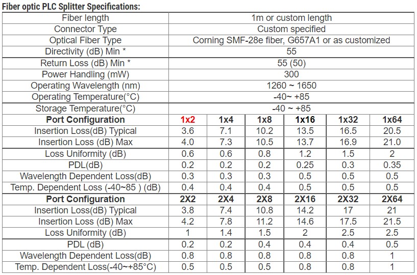 - Low Polarization Dependent Loss.
