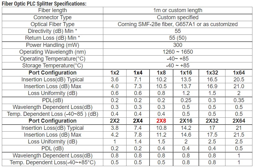 Optical Fiber Splitter 2X8 / Fiber Optic Splitter Loss Fiber To The Home Type