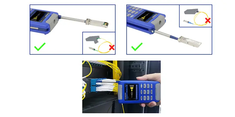 The Optical Probe equipment uses non-contact probe power detection. It can be tested without touching ports or cables to reduce the risk of fiber contamination or damage.