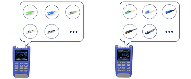 In order to adapt to all common test scenarios on the market, the optical probe integrates 2.5mm universal adapter, 1.25mm universal adapter, SC probe-type adapter and LC probe-type adapter. When need to complete measurement tasks at various levels and different fiber connectors/bulkheads are used, the user doesn’t need to carry extra conversion patch cords.