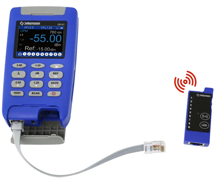 In a complex field environment, it is difficult to determine the head and tail of a wire. The optical probe integrates RJ45 line tracking function. User can plug one end of the network line into the OP-01, and use the receiver to find the other end of the network line.