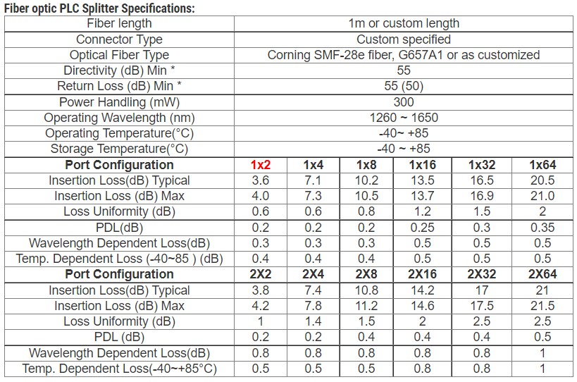 Planar Waveguide 1×2 PON GPON Splitter Optical Fiber 0.9mm 1.5m LSZH
