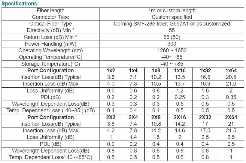 - Low Polarization Dependent Loss.