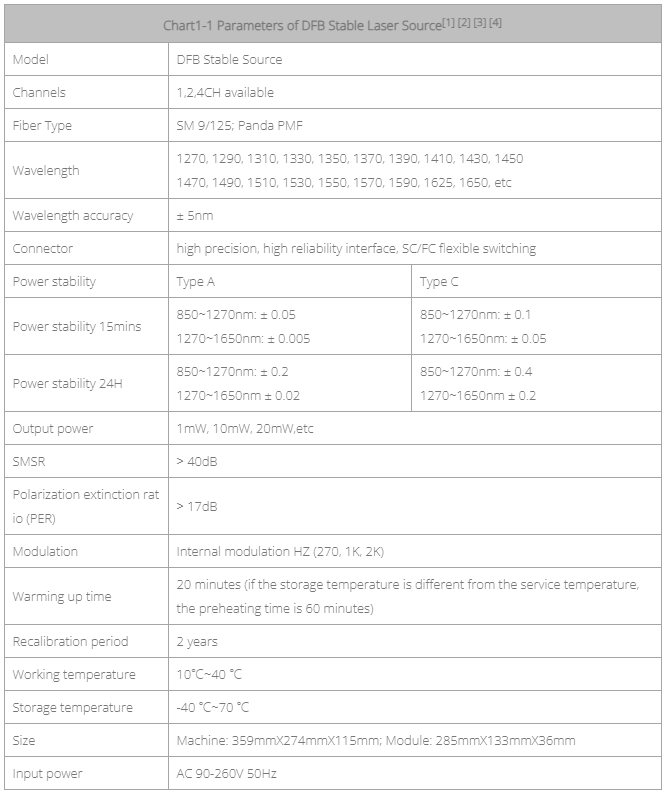 Parameters of DFB Stable Laser Source[1][2][3][4]