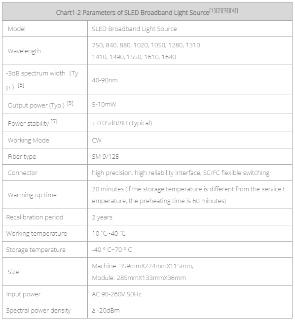 Parameters of SLED Broadband Light Source[1][2][3][4]